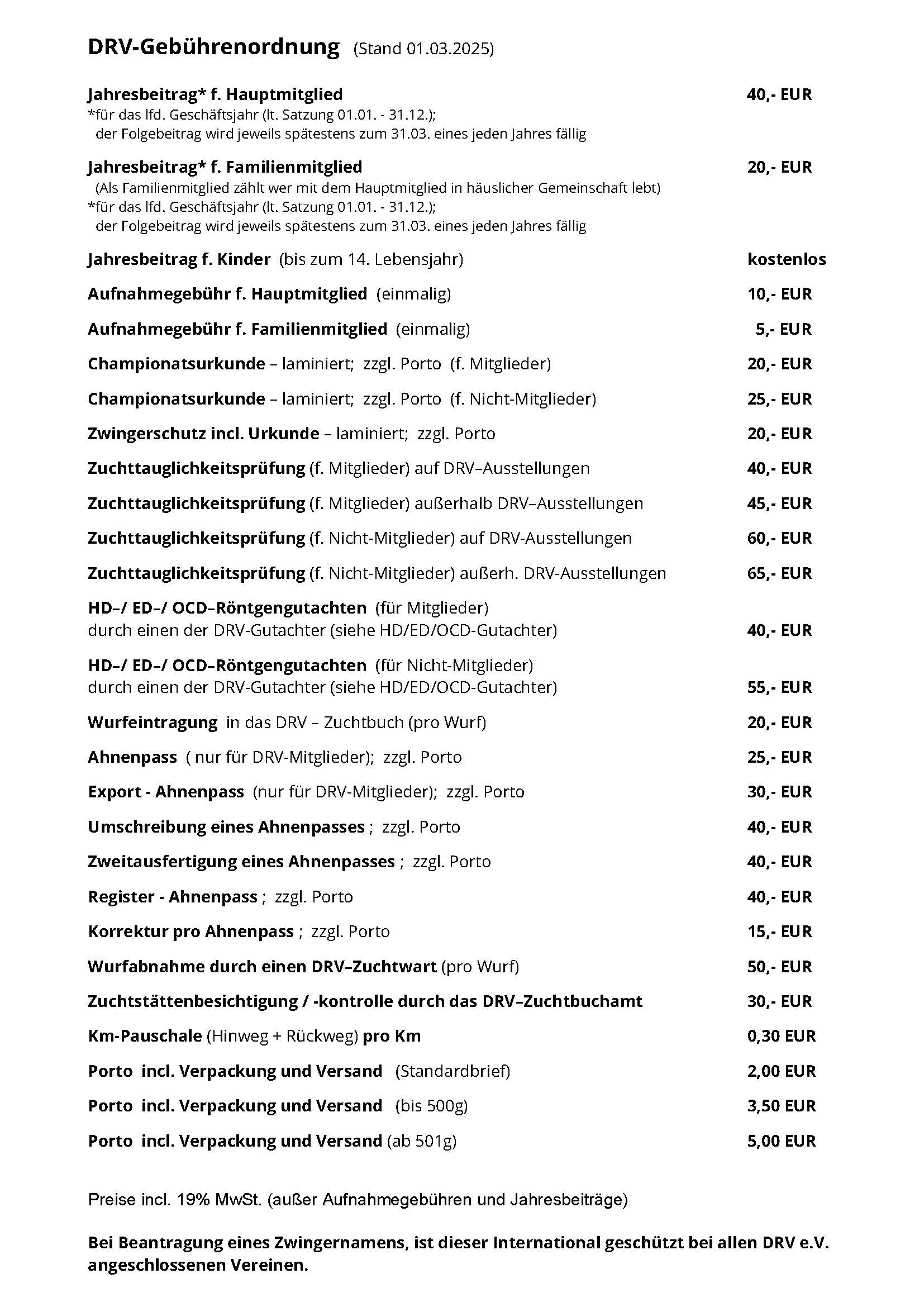 DRV e.V. - Gebührenordnung gültig ab dem 01.03.2025